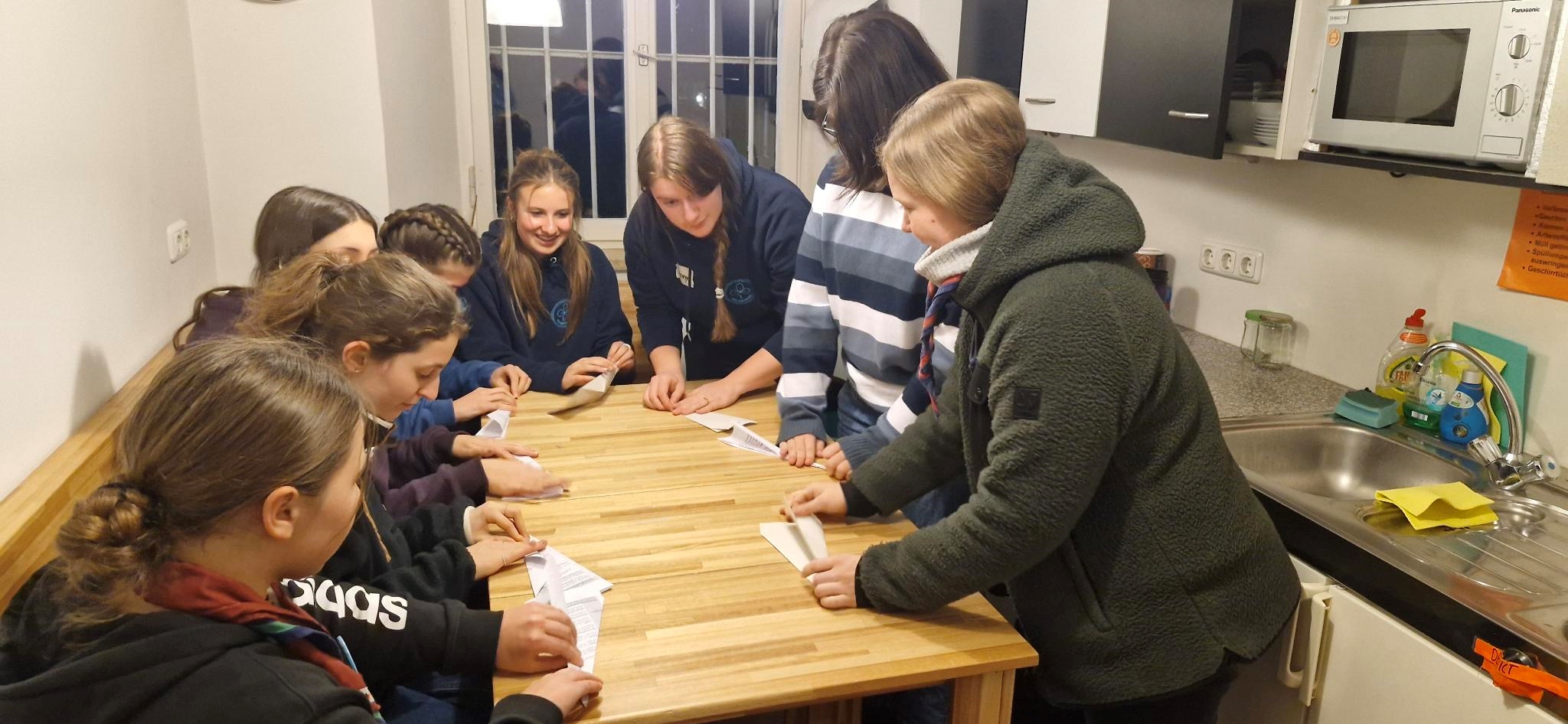Im Rahmen unserer Leiter*innenausbildung führte unser Au-Wei-Team im November das Grundlagenmodul „Basics“ durch – mit ganzen 21 Teilnehmer*innen! Mitten in Augsburg, im Übernachtungshaus des SJR, verbrachten wir gemeinsam ein Ausbildungswochenende mit vielen pädagogischen Inhalten. Unsere angehenden Leiter*innen konnten sich mit verschiedenen Moderationstechniken, Leitungsstilen und der Elternarbeit beschäftigen. Die Gruppenphasen kamen auch nicht zu kurz – die konnten die Teilnehmer*innen durch eine kleine Übung direkt selbst erfahren. Daneben wurde sich gemeinsam mit der Frage auseinandergesetzt, was eine gute Leiter*in ausmacht und welche Rechte und Verpflichtungen eine solche Rolle mit sich bringt.