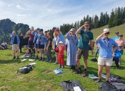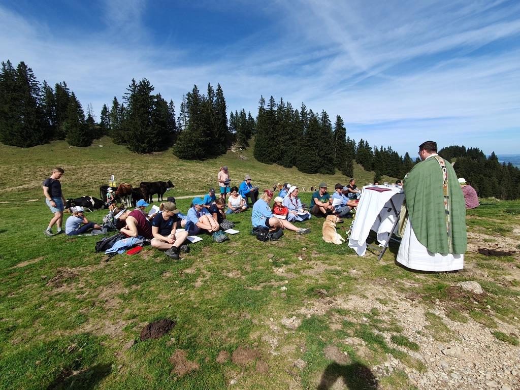 Hoch hinauf ging es am Sonntag, den 17. September. Um die 20 Bergfreund*innen trafen sich auf dem Bärenköpfle, um nach dem Aufstieg in kleinen Gruppen gemeinsam mit BDKJ-Präses Florian Stadlmayr eine Messe in 1.476m zu feiern. „Highlight“ lautete auch das Motto des Gottesdienstes. Nach einigen Statements zu den persönlichen Highlights des vergangenen Pfadfinder*innenjahrs, griff Florian das Thema auf und gab uns gleichzeitig folgende drei Wünsche für das neue Jahr mit auf dem Weg: Gelassenheit, Euphorie und das gemeinsam mit Jesus als Weggefährten.