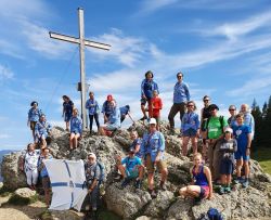Anfang September trafen sich ca. 60 Bergfreund*innen zwischen 3 und knapp 83 Jahren am Bärenköpfle bei Immenstadt, um nach dem Aufstieg in kleinen Gruppen gemeinsam mit BDKJ-Präses Dominik Zitzler eine Messe mit Blick auf die umliegenden Gipfel zu feiern. „Das ist der Gipfel“ lautete auch das Motto des Gottesdienstes. Nach einigen Statements, was alles im positiven oder negativem Sinn „der Gipfel“ sein kann, wurde der Gedanke in der Predigt noch einmal aufgegriffen. Da war von „Gipfelerlebnissen“, von „Gipfelkonferenz“ mit Gott und von der Bibel als „Gipfelbuch“ die Rede. Bei sehr windigem aber sonnigem Wetter konnte dann in kleinen Gruppen der Weg nach unten wieder zu Fuß oder mit der Mittagbahn angetreten werden. Alle waren sich einig: es war ein schöner Tag – gerne wieder!