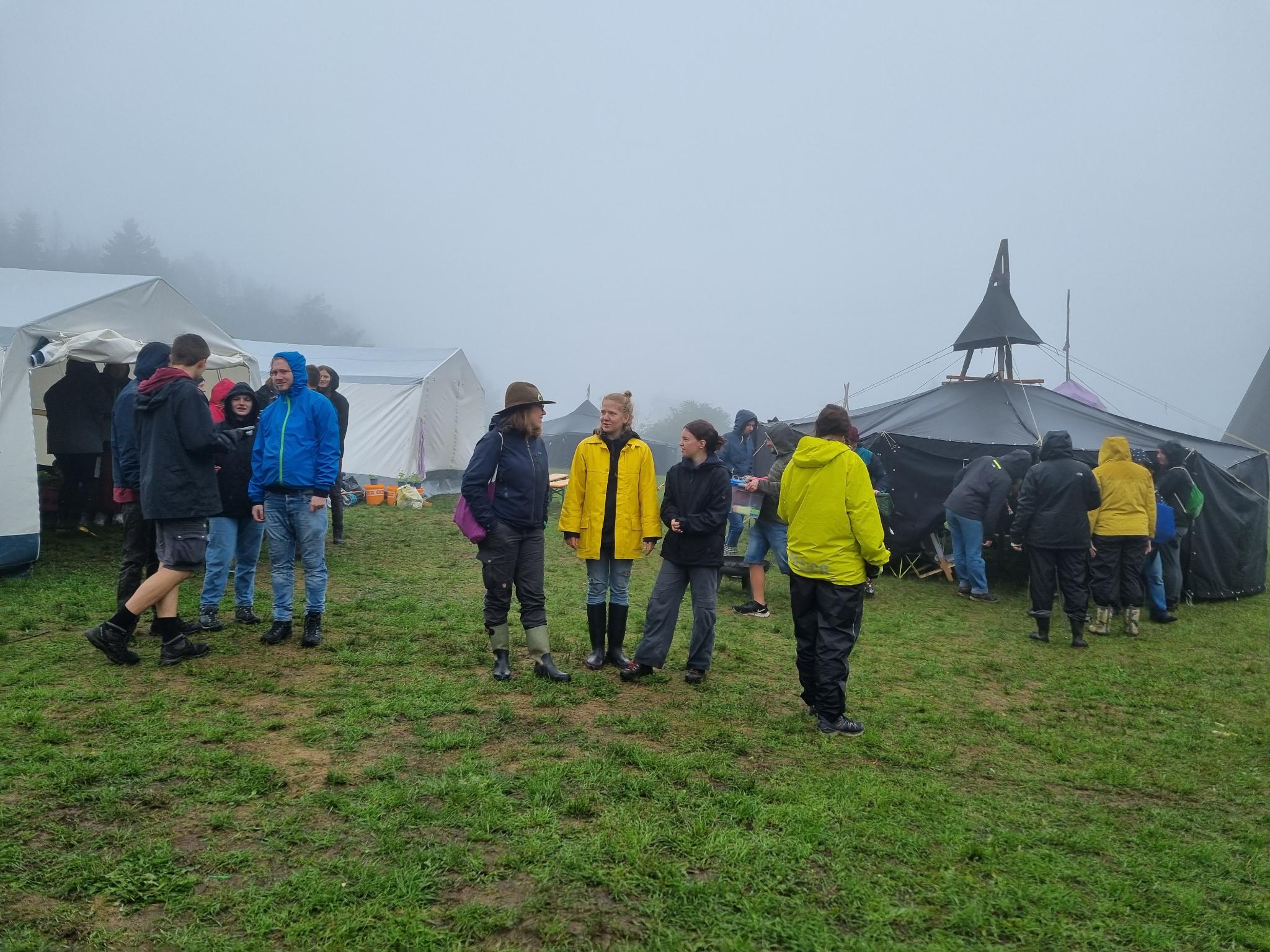 Natürlich kommt auch die Begegnung mit Pfadfinder*innen aus ganz Deutschland nicht zu kurz. Neue Freundschaften sind quasi vorprogrammiert. Nur das Wetter stellt eine Herausforderung für alle dar: Trotz Dauerregen, Nebel und Sturm sind die Pfadfinder*innen engagiert beim Thema und trotzen dem Wetter mit bester Stimmung.