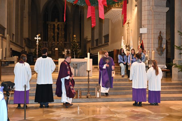 Unter der Leitung von P. Christoph Lentz SAC und Mitzelebrant Domvikar Dominik Zitzler, beide ehemals Präses des BDKJ (Bund der Deutschen Katholischen Jugend) im Bistum Augsburg wurde ein lebendiger Gottesdienst in einem mit jungen Menschen gut gefüllten Dom gefeiert. P. Lentz ermutigte die Pfadfinderinnen und Pfadfinder, weiterhin ein mutiges Signal in Kirche und Gesellschaft zu setzen. Er dankte den jungen Menschen sowie allen katholischen Jugendverbänden für dieses Engagement und forderte sie - als Teil der Kirche - auf, sich weiterhin für Demokratie und gegen faschistische Tendenzen einzusetzen.