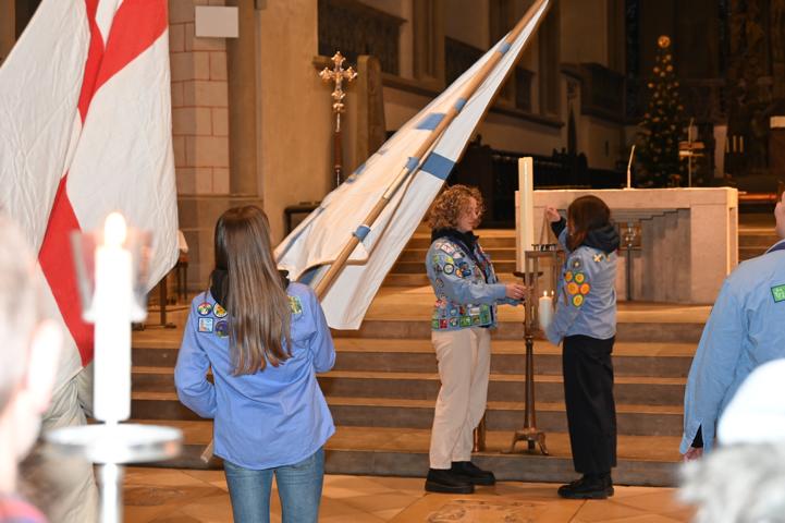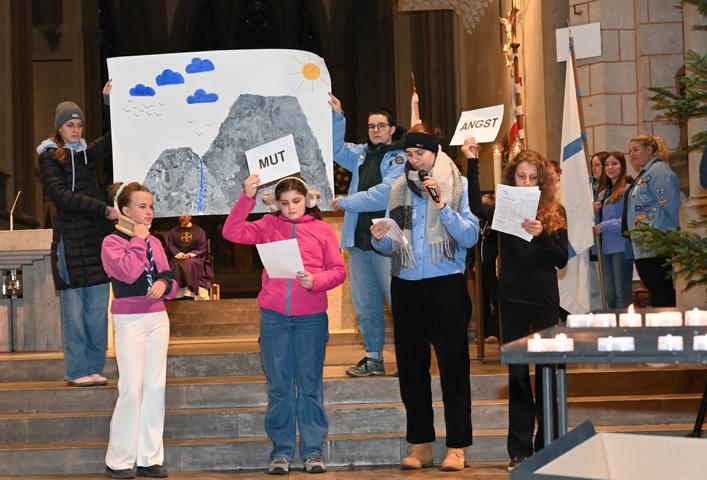 Pfadfinderinnen vom Stamm Krumbach holten das Licht in Linz ab und brachten es nach Augsburg. Der Gottesdienst, unter dem Motto „Ein Funke Mut“, wurde von der Stadtgruppe Augsburg gemeinsam mit der Kuratin Steffi, gestaltet. Dabei wurde Ambrose Redmoon zitiert: „Mut ist nicht die Abwesenheit von Angst, sondern die Entscheidung, dass etwas wichtiger ist als die Angst.“