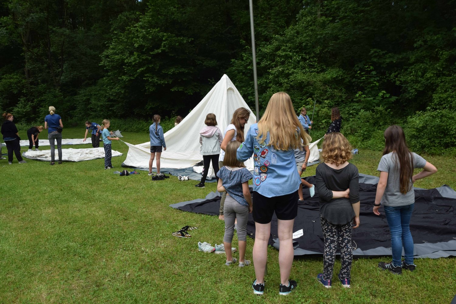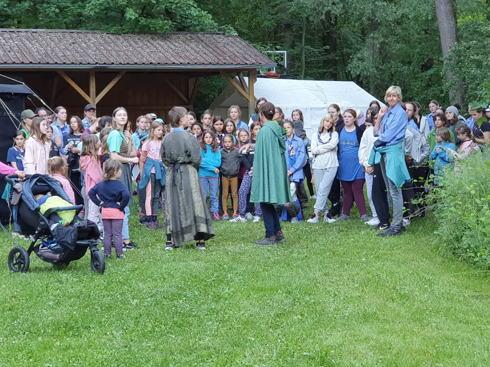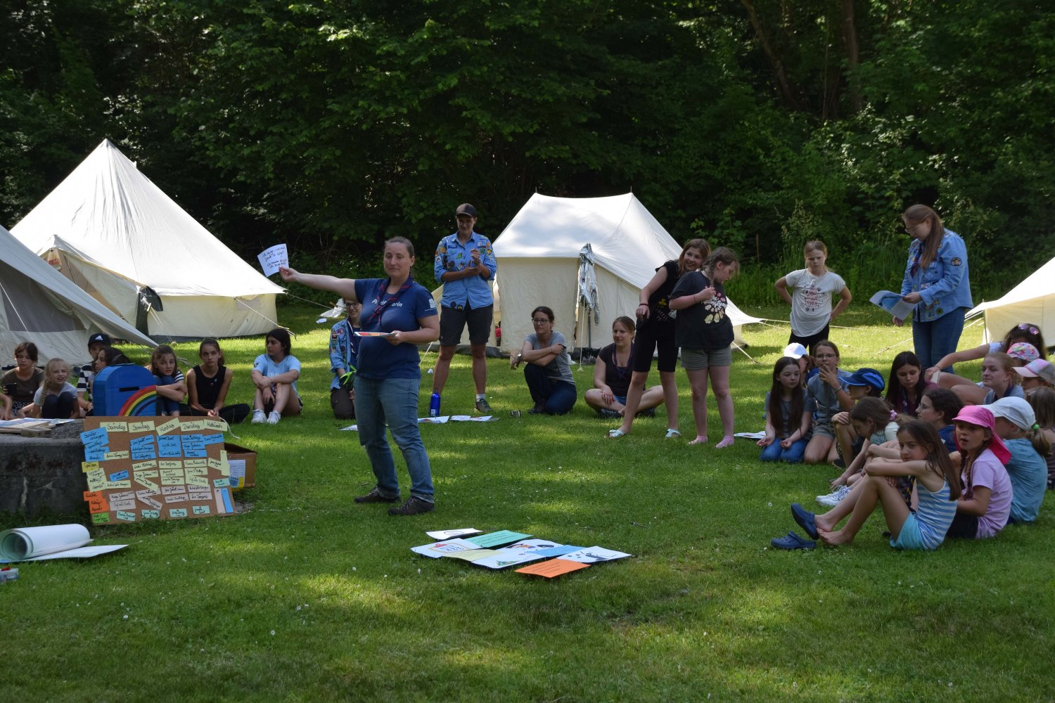 Passend zum Thema ein Rucksack voller Abenteuer gab es auch die Möglichkeit das Spezialabzeichen Abenteurerin* zu erlangen. Dafür mussten Workshops absolviert werden, die für das Leben als Pfadfinderin* und als Abenteuerin* wichtig sind: vom Erlernen von Wegzeichen und einem Grundwissen zum Hajk, das richtige packen eines Rucksacks, über Zeltkunde und Werkzeugkunde, bis zum Workshop Holz und Feuer und Lagerfeuerküche war alles dabei. Wir sind besonders stolz nach dem Lager über 70 kleine und große Abenteuerinnen* begrüßen zu dürfen!